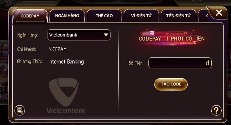 Codepay sử dụng cơ chế chuyển tiền tự động thông qua mã QR và mã giao dịch riêng. Mỗi giao dịch đều có mã tham chiếu để SunWin đối chiếu trực tiếp mà không cần xác thực thủ công. Hệ thống sẽ tự động ghi nhân giao dịch khi mã được quét thành công. Người dùng chỉ cần bảo đảm không nhập sai mã để tránh bị từ chối. Codepay phù hợp cho những người thích thao tác nhanh và không muốn nhập thông tin thủ công.