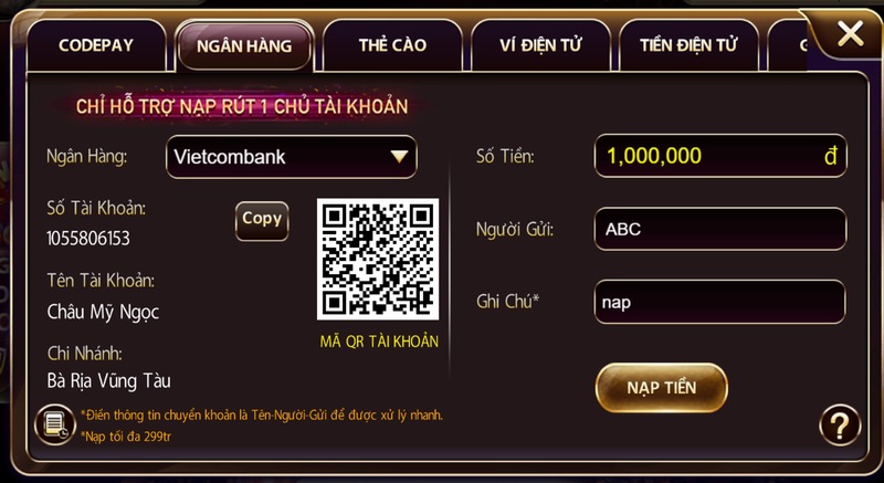 Nạp qua ngân hàng với mã nội dung bắt buộc