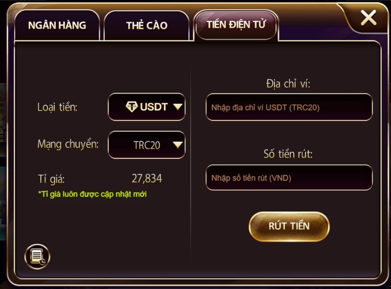 Rút bằng tiền điện tử yêu cầu người dùng nhập địa chỉ ví chính xác. SunWin không thể hoàn tác giao dịch nếu địa chỉ sai cấu trúc. Giao dịch thường phụ thuộc vào tình trạng mạng blockchain. Người dùng nên kiểm tra tốc độ mạng trước khi gửi yêu cầu. Phương thức này phù hợp với những người sử dụng tài sản số hoặc muốn chuyển giá trị sang ví cá nhân.