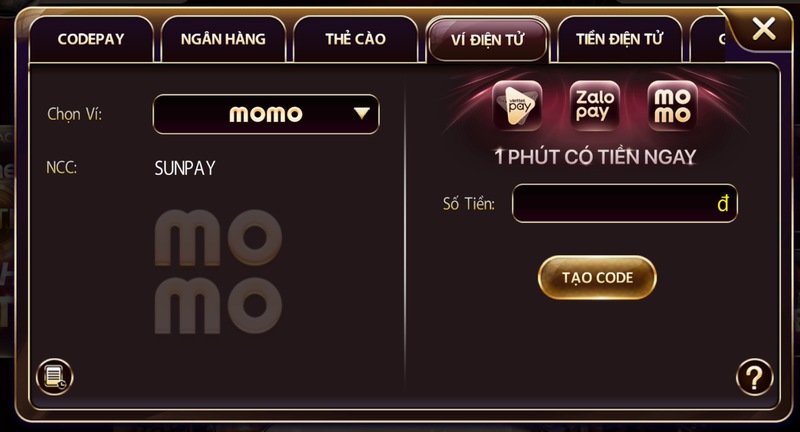 SunWin hỗ trợ nhiều ví điện tử lớn giúp giao dịch diễn ra linh hoạt. Người dùng quét mã hoặc chuyển theo số tài khoản được hệ thống hiển thị. Ưu điểm là tốc độ xử lý ổn định và giao dịch được đồng bộ ngay khi ví xác nhận.